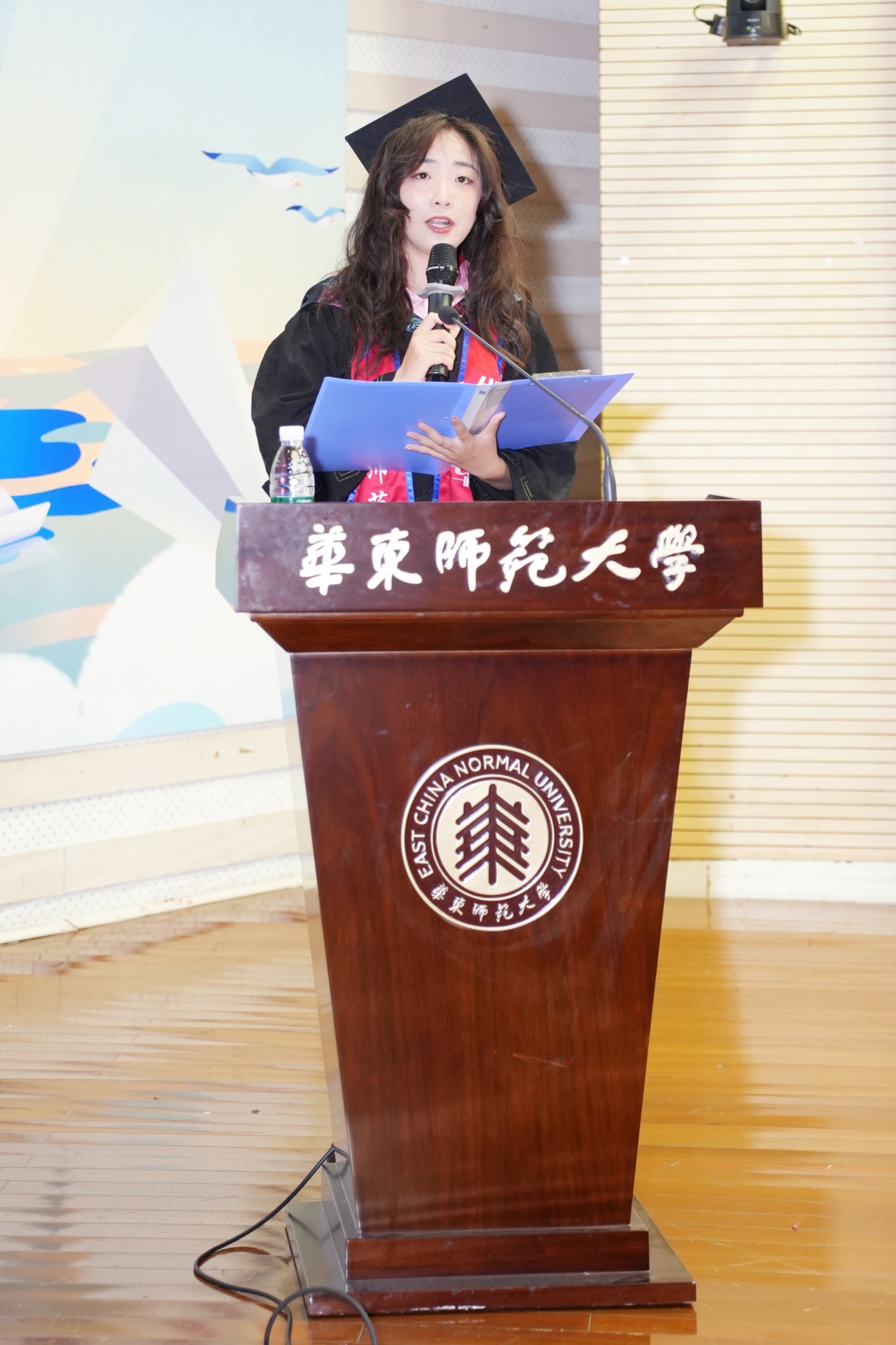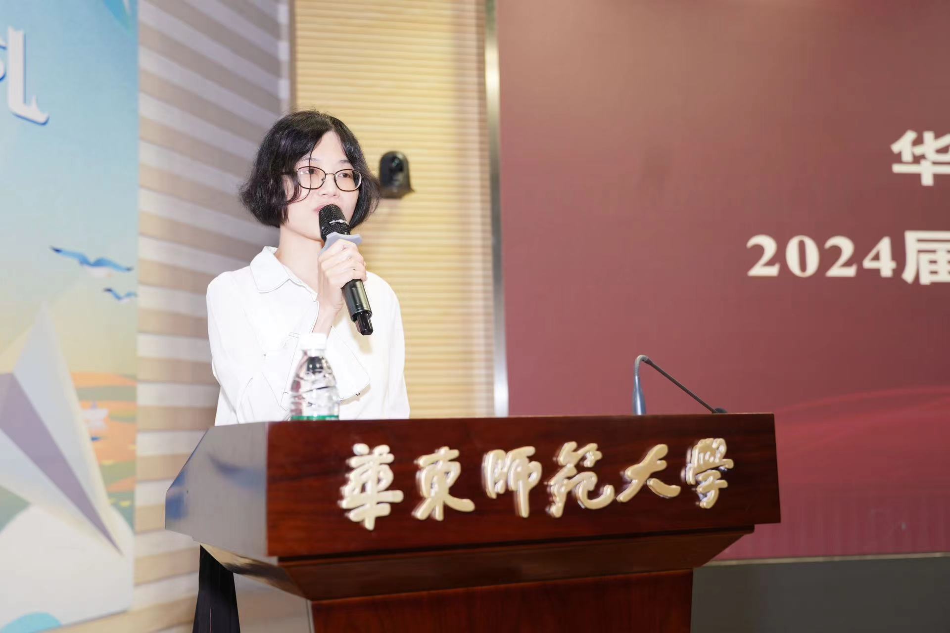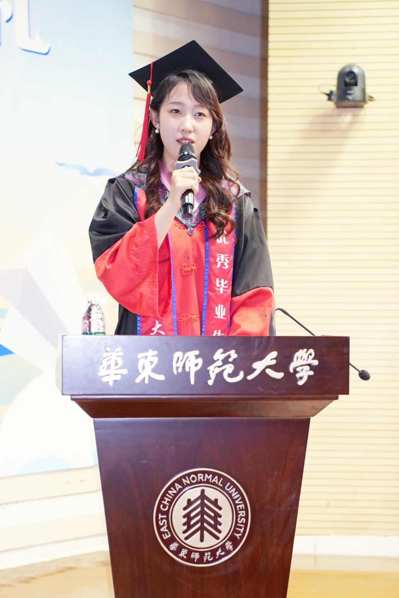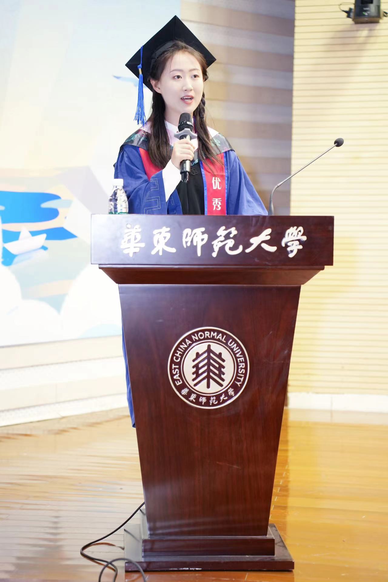 本科师范班毕业生代表张静向师长们四年间的关心、教导表达了由衷感谢。她回顾了在师范班求学的四年本科求学生涯,表示大象传媒 关于专业知识的指导扎实,孟宪承书院对师范生素养的涵养全面,同学们在浓郁的学习氛围下得以汲取养分、茁壮成长。她祝愿各位毕业生鹏程万里,未来可期。